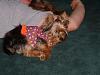 | This is Daisy a 7 month old Yorkshire Terrier. She is a super model. Here, Daisy is modeling the latest creation from her personal designer "mom". This is a candy corn harness dress with matching ruffle. She is being escorted by her boy Tyler. ![]() |