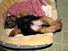 | Oliver at 10 weeks old, sound asleep, after his first couple of hour at our home with two other doggies to play with. |