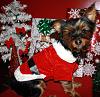 | Here is Gizmo's first Christmas photo! It's also the pic I am using for the Christmas card exchange! It turned out sooo cute! Little stinker wouldn't sit for me on the "hard" floor though, DH said to put a pillow under him and then he would sit, and it worked! His butt is too precious for hard surfaces!