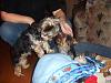 | Living My Yorkie Dream Donating Member | Oscar has been with his forever family for one week today, and though we miss his playful antics & sweet face so much, it does my heart good knowing that he is with a family that is giving him all the love & care he deserves and that I was able to bring such joy into their lives by sharing my yorkie dream through Oscar. That is after all, one of the reasons I decided to breed. Oscar's adoption came up quite fast and being a long distance one at that (Colorado), I will admit that it made me a little nervous. I did not know the person who called at all, but it helped when I discovered that he was a relative of a YT member. He was buying Oscar for his mother who had fallen in love with the breed & had been wanting one after meeting her niece's yorkie. After speaking a few times on the phone with both him and the YT member, I felt better assured that their home would be a good one for my sweet Oscar. He (Alex) made the long drive to pick Oscar up last Friday with a couple of his friends to share the driving, and when they got here I found them all to be very nice, polite young men; all obviously enjoying meeting all of my fur kids, and all seeming to fall in love with Oscar at first site! My husband and I chatted with them for an hour or so, dealt with the paperwork part of our meeting, and then it was time to say good bye.Yes, there were tears The first chance he got after returning home and settling in, Alex sent word that Oscar handled the long drive "home" well and was settling into his new home with ease. His new mommy is very happy with her new baby & instantly cannot imagine life without him.(we all know how that is, don't we? "D) Oscar met his new "cousin" in his first weekend home and it seems that they will be life-long friends. I have chatted with Alex a few times via email this past week and he assures me that he will send pictures of Oscar from time to time as he grows & said that I can share them with all of my friends on YT. ..........and would you lookee here............................PICTURES! ![]() ~ Does she look like a happy new mom, or what! ![]() ~ Checking each other out from a distance (Oscar by the door) ~ .......getting closer.............. ~ ahhhhhhhhhhh, instant new friends!!!!