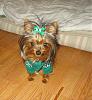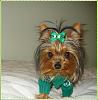| He is so handsome in green! Isn't it funny that certain dogs look good in certain colors just like us humans! lol Pixie best color is purple! Daisy's is Red!