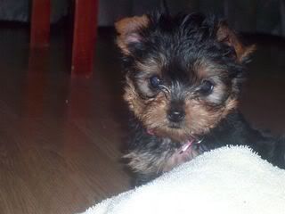 We just brought home our very first Yorkie a few days ago. She is getting a long great. She is adjusting to her kennel at nights and has been eating and using the bathroom really well. I started to teach her the "sit" command and she so far is responding quite well! We are having a very fun time with her.