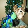 | Living My Yorkie Dream Donating Member | Hannah & Reggie have grown up a lot since last you saw them. They both celebrated their 1st birthdays recently. They are both so playful and bring tons of fun to our home. - Hannah ~ another dress made by me....and another beautifully matched bow made by Ladymom - Reggie - Hannah & Reggie's visit with Santa at Pet Smart - I finally broke down & bought the thermal pj's I've been eyeing on Walmart's website for so long and I absolutely love them!! Certainly one of the cutest clothes I've ever bought for any of them. And to top things off, THIS picture is also on of my best. LOVE IT!