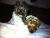 | Because I haven't posted any pictures recently... I thought I would share a few Please forgive the picture overload ![]() 1. Couver and Khloe in the backyard watching us build their new fence. 2. We took them up to the cabin a few weeks ago. They LOVED the snow ![]() 3. The best part about having two: seeing them cuddle! 4. Couver all bundled up helping with the fence.