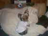 | So I haven't posted any pics of Silver in a long time so I figured I'd post one or two. First one is from tonight in her onesie after her spay Second was a couple weeks before her puppy class graduation Third is one before Valentine's Day Fourth is a few weeks ago when she was being a baby