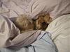 | Widget did not want to get out of bed this morning. Eastern Standard Time is no fun! Every time I went to grab him he crawled deeper in the blankets. ![]() ![]() ![]() |