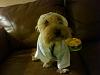 | His new bath robe is made of bamboo! so it's organic! Just had to take some pictures! hehe! |