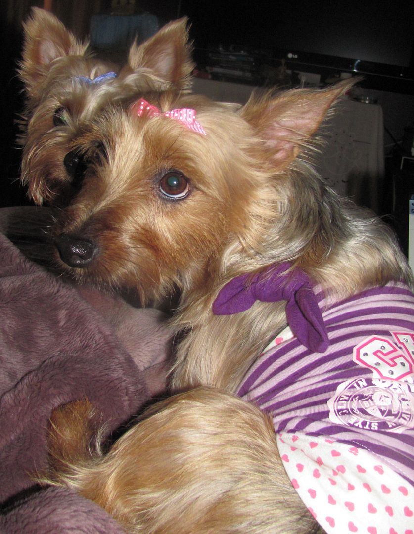 | My avatar is a Silky Terrier (with a bow in) however it stayed in for all of 2 min LOL! Your babies are precious!! |