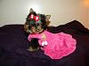 | I purchased some clothes for Violet and recieved them Monday....I wanted to wait untill after he bath to post her pics.....sooooo here they are! Thanks Elaine (mom of 3 dogs) We also have been working on her top knot and today I made some velcro backed bows for her!!! What do you think?? ![]() She was getting super sleepy and the last pic is a close up of the bow.....she hadsnt opened her eyes since! LOL poor girl is pooped! But she was such a good sport! I am so in love with this baby!