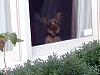 | Yesterday was an odd day in that the temps were in the 60's and the sun was shining. So, I thought I'd spend a little time out back getting up some of the leaves. I didn't want Bailey out there because I was using a blower and didn't want something hitting him accidentally. Bailey was watching me from the window so I snapped this photo with my phone. He stood there most of the time until I finally finished with the blower and let him come outside. |