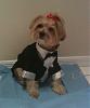 | How cute is that? I just love the tux and sneakers combo! I know lots of grown men who'd be delighted to be Yorkiefied with that attire! He is a cutie for sure!
