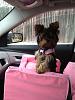 | I finally figured this picture thing out with the help of a great YT'r! Here are some pics of Sami I have been wanting to share. 1st pic: her first clip 2nd pic: on her wat to Pet Smart training graduation 3rd pic: Sami in her new Snoozer car seat 4th: the dress and bed Normarae63 (Sherry's Pet stuff) made. It matches some outfits I got for my boys perfectly. I am getting their pictures done with Sami. The pic does not do it justice, as she was more interested in the treat my son was holding than posing for me. Thanks for looking!