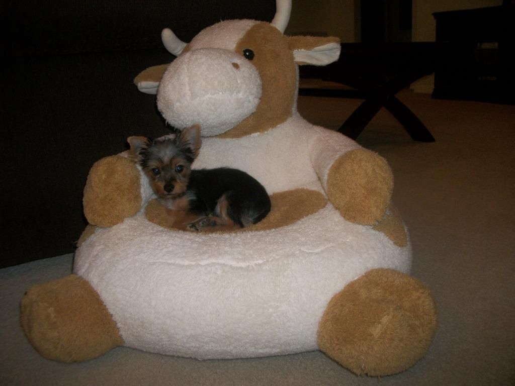 | Senior Yorkie Talker | Buddy is so small that cats see him as prey. ![]() My cats arent being mean to him but they get into that hunting mode stance, wide eyed and wiggly but. And when we were walking a feral cat was staring at him like food. ![]() He found another bed. Well, not really a bed, but my little's brother's bull chair. http://i1254.photobucket.com/albums/...psbfff8dbe.jpg Were attempting crate training againt tonight, with the crate in my bedroom. This is going to be "FUN!"