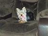 | Lily and Taka each playing with their favorite toy. Lily looks like her face is dirty but its not she just got a bath she just drools ALOT while playing! Also, I'm noticing a color change on Taka! He is lightening up in the face. |