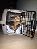 | Jeez, all I said while I was putting away the dishes was "I think I'll give him a bath" and zoom!!!!! he takes off. So here he is in his crate. We keep the crate as the safe zone so I have to wait until he comes out. There is no way I can bribe him out of there either. Let's see how long this takes!!! Update later!