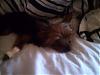 | Ahh poor coco, looks so sad, When you are feeling better you can run round and cause lots of mischief to get back at your mummy! |