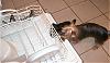 | Here is my little helper. I don't even need to "rinse" the dishes when Chizzie is around..... LOL I would love to see pics of YOUR babies "helping" around the house |
