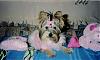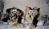 | Sorry it woulden't let me edit. Was I was going to say is that my favorite picture of them is the third one. Scampers looks so naughty and Destiny looks so innocent and angelic. Oh and the bed is Destiny's, Scampers just thought he would climb in with her!!! Sorry about the lighting, my scanner must not be working very good because the actual pictures are crystal clear and perfect. Oh and check out my other thread, it has the group photos of four of them together, Scampers, Poptart, Trixie and Destiny. I coulden't fit poor Peppi into the group photo but I did include a picture I took of her. Here is the link... http://www.yorkietalk.com/forums/showthread.php?t=53051 Yea, I know, that is alot of pictures, what can I say, I love my furbabies!!!!!