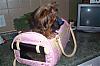 | Here is a carrier that i got with Maddies gift certificate money from Tinkerbells Closet. I love love love this one. She is around 3lbs and fits in it with room to spare, plus its not really big. Thanks Shana!!! |