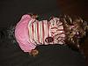 | After dinner we took these pics of the girls, they had just eaten, so their mouths are all slobberish lol... Chelsey is wearing the pink outfit she got from her grandma for her BD. |