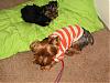 | Here are some photos from this morning. This is the first time they have been this close lounging together. I just loved it!!! Zoie is feeling a little better today ![]() I just LOVE that one of her standing on Wookie's back.. heheehhe |