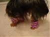 | oh how cute! they would be perfect for Layla... did you get them at petsmart??? she hates it when the snow bunches on her legs.. she will chew on them like crazy!!! Gracie looks too cute!!! like a girl from the 80's |