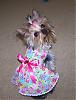| No Longer a Member | Thanks for all the replies!! I would love to have a guinea pig to try making a larger size for. Anyone wanna be a volunteer for a freebie dress? I need someone with a yorkie that is around 6 lbs. I have enough of the butterfly fabric to make one more. |