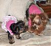 | Yorkie Kisses are the Best! Donating Member | OH WOW They're already sleeping together ?? That's SUCH A GOOD SIGN and way better than I expected with Maddie being such a mommies girl... She is TOO CUTE Connie and I'm soooo happy for you !! Maddie and Libby ARE going to be best friends - i can tell !! Very cute pictures and I'm so looking forward to watching her grow up. She's going to be one well dressed little yorkie girls - I see it already lol - |
