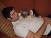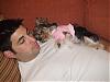 | I just wanted to share a couple of pics of little Enja and her Dad! She was spayed almost 2 weeks ago and is doing great. She is just the most precious little addition to our family! Here are pics of her and Daddy curled up on the couch!