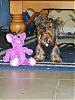 | Aaaaw! I hope the toy realizes that little Tinker is the cutest of the two.... what an adorable little Yorkie!!! |