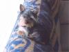 | Yep...today is Jo-Jo's 6 month birthday...he's turning into a 'big boy'! Here's one of him lounging on the back of the couch...I keep a blanket there so he won't slip off. He likes to survey his kingdom through the safety of the living room window! The second one is of him taking a nap with Dad...well, Dad was napping...Jo woke up as soon as he heard the camera bell. |