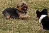 | Banning Thread Dictator Donating Member | Eddie's childhood pal Sophia came by for a rare visit, and they picked up where they left off: She chases him until they both tire out, he refuses to share his toy, and she finally gives up. Then he rolls on his toy to get his scent on there so she knows not to try to steal it next time.