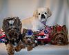 | Happy 4th of July everyone........... I made these dresses for the girls. They we're going to be in a parade but unfortunately their daddy had to work and I definately can't control all four of their butts by myself. However, their daddy was in the army for 6 years and a picnic is coming up and all four of my babies will be going and wearing their American gear to support our troops. Hope you enjoy the many pics I have to post, LOL We also want to send out a very special thank you to all the soldiers and their familes for everything that they do. We love you!! 1. Pia, Trixie, Paisley and Snoot 2. All my girls!! 3. & 4. Pia and Trixie