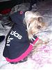 | Donating YT 11K Club Member | Okay maybe I decided for her LOL This adidas hoodie was SUPPOSED to be for a little boy I was getting but I'm not getting him anymore. I got it from a YT member and she only had this small size so it doesn't fit Teddy. I love hoodies on yorkies, I think it's so cute! Well it fits London, although she wasn't too happy about it, I took it off don't worry. But I took some pics before I did Also I just realized something today. London doesn't do any tricks, Teddy is the trick master here but I noticed that London's best trick is that as soon as I take out the camera she knows how to pretend like she's sleeping You will see in the last pic