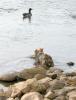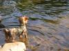 | Sully vs. the Ducks at the park - VIDEOS! Last weekend, we took Sully to the city park. My husband and I fed bread to the ducks. There were so many of them! There were many ducklings also! My husband Eli and I thought it was cute...but Sully thought it was absolutely intriguing! (We think he saw them as "swimming chickens" - because we all know how Sully feels about chickens, haha!) Sully is the most entertaining dog! He usually does NOT like the water...but he got in the river, waded all the way out to a rock trying to get closer to those ducks! (Click here to view the video of Sully wading in the water. Sorry for the glaring sun on the video, btw.) Well, most of you know what our babies do when they're wet....ummm, yeah, so here's a video of Sully rolling in the sand. (This one is sooo funny!) Guess who got a bath when he got home? I've also attached a few cute pictures I took of Sully and the ducks at the park that day. (Covered Bridge Park - Elizabethton, TN.)