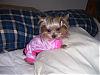 | Donating YT 11K Club Member | More pics It was hard to take pics of London cause she was tired from being in heat But these pjs keep her warm and cozy alll night long. Sophia seems to love taking pics, she just sits still and smiles for the camera.
