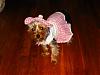 | Daisy new oufit came today! It's a harness dress, matching hat - yes, HAT! and a matching leash. All is adorned with "daisies" on the trim areas.. SO CUTE!!! *So pink* Momma loves...1. "Look at Daddy!" 2. "Daisy, look at Momma!!" 3. What is this strange thing on my head?! 4. HA! I'm gonna shred this darn thing!!!