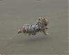 | Not one foot on the ground. I sold this boy to a pet home about 1 1/2 years ago and he is vacationing in this picture on the Oregon coast. And then there is touchdown again. |