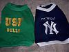 | Mr. Biggs in his personalized Yankees shirt Mom, what if I don't like the yankees???And in his Perrito Latino shirt (translation: latin dog) mmm.... treats.... yo quiero treats!