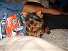 | In these last two pictures first Bailey was bitting Tinker's leg because she was laying on his blanket and bed The second picture is just a cute close-up side shot Thanks for taking a look