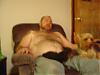 | DH tries to act like he could careless if they are here or not when people are watching...But, I come home and he is napping with Dino in the chair And of course when I get the camera out Max has to be in the picture and wake them up |