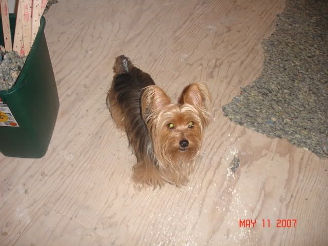 LOL We kept her downstairs cuz all she does is get in the way! But here are two pics of her when my dad was helping rip up the carpet. ![]() "Mommy, wut r u doin wif all my pee pee?" ![]() http://i69.photobucket.com/albums/i4...e/DSC01666.jpg http://i69.photobucket.com/albums/i4...e/DSC01667.jpg
