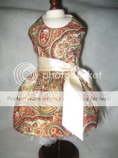 | Everyone got a little sneak peek of 2 of my Christmas Dresses in my Halloween & Fall Dresses/Vest thread, here are all the Christmas dresses I will be offering this year. Although I don't have any vest pictured, any of these fabrics can be used to make a vest. If you look at the photobucket images attached and zoom in you can see that most of these prints have a metallic gold print to them. All dresses are $25 each and vest are $15 unless you would like the more formal type vest for $20. Shipping & Handling is $2.50 per order and I also offer matching top knot bows for $4 with bands. All payments are made through PayPal. Please place orders through pm, or email at prissypawfashions@gmail.com, include your furbabies measurements (neck, chest, waist and length) and your email addy to send an invoice. The first set of dresses Kylie is modeling, these are the 2 dresses posted in the Halloween/Fall dress/vest thread. Isn't my baby girl just beautiful??? Pic 1&2: Christmas Elegance Pic 3&4: Crazy for Candy Canes http://i468.photobucket.com/albums/r...Dresses029.jpg http://i468.photobucket.com/albums/r...Dresses027.jpg Last edited by crb; 10-27-2008 at 03:00 PM. |