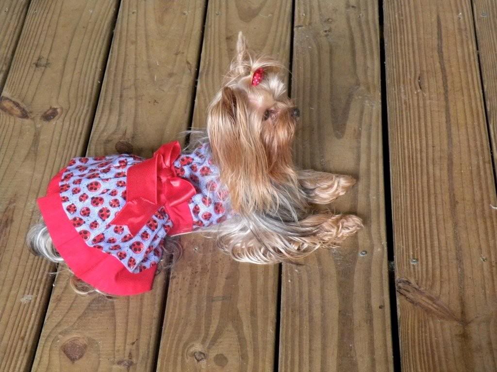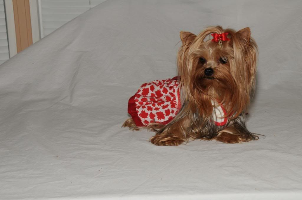 | Living My Yorkie Dream Donating Member | Your YorkieTalk username - luckylady Your Yorkie's Name - Halle Is Your Yorkie a boy or a girl - Girl Your Yorkie's Age (years and months) - 1yr 6 months Your Yorkie's Measurements (Weight, Height, Length, and Chest Size) - WEIGHT: 6 lbs. 8 oz HEIGHT: 7 1/2 inches LENGTH: 10 inches CHEST: 12 1/2 inches Yorkie's Size of clothing (The common size you usually buy: XS, S, M, L) - Best bet, Small - Better yet, go by measurements Yorkie's Favorite Toys, Snacks, Clothing style - Small squeaky or krinkly toys, tiny snacks (like yorkie yummies), and beautiful girly dresses or tank tops Yorkie's favorite colors -Bright light colors or pastels Have you participated in any past YT Gift Exchanges? If so, which one(s) - Yes, getting to be to many to remember ![]() If you have participated in past Gift Exchanges, has your address changed since the last one you participated in? (You do NOT need to PM admin if you have not moved since last time, if you have not participated in a YT Gift Exchange before, please PM admin with your name and address for the GE after you sign up)? - No change Links to YorkieTalk threads with pictures of your Yorkie or a link to you YorkieTalk Photo Gallery (so your Buddy can see who they are giving to) - I'll post some below and/or visit my profile album Anything extra I want my Gift Exchange Pal to know about my Yorkie (please mention anything your Yorkie doesn't like or doesn't want or can't eat) - The only absolute no-no's are rawhides or greenies.