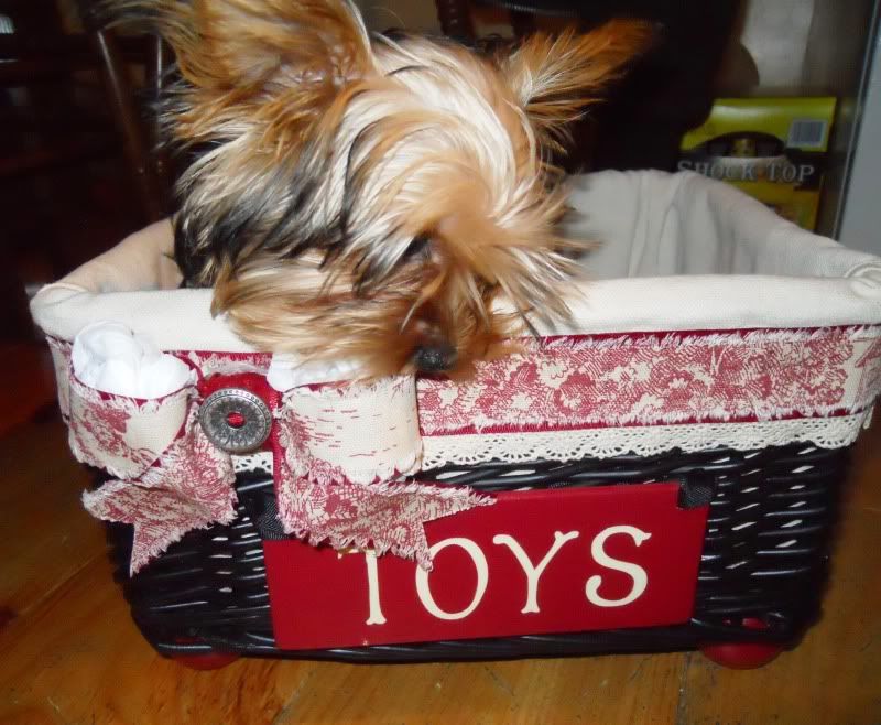 | Wow Kelo you were so lucky to get Carmen and Luma for a buddy. They knew exactly how to spoil you and knew exactly what they wanted, and by the looks of it, wow! What a great buddy you had. So glad you like the basket. Working with the toile was a first for me and I really really loved how it turned out. So much so, I thought it would have looked great in my living room too! ![]()